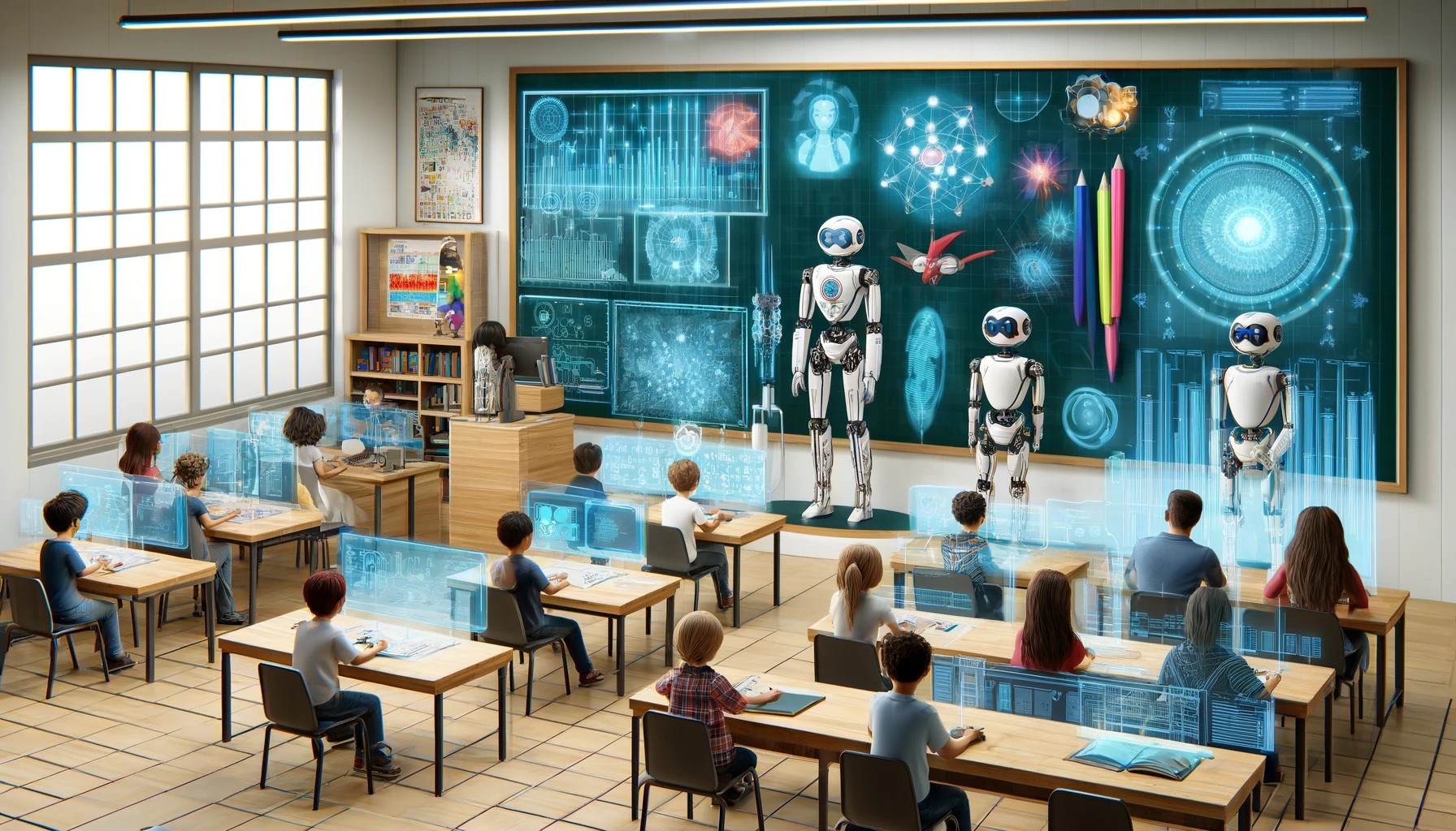 [ChatGPT] Aqui está a imagem que você solicitou sobre Educação e Inteligência Artificial. Ela mostra uma sala de aula moderna onde os alunos interagem com ferramentas alimentadas por IA, exibindo um ambiente futurista e realista que destaca como a IA aprimora a experiência educacional.