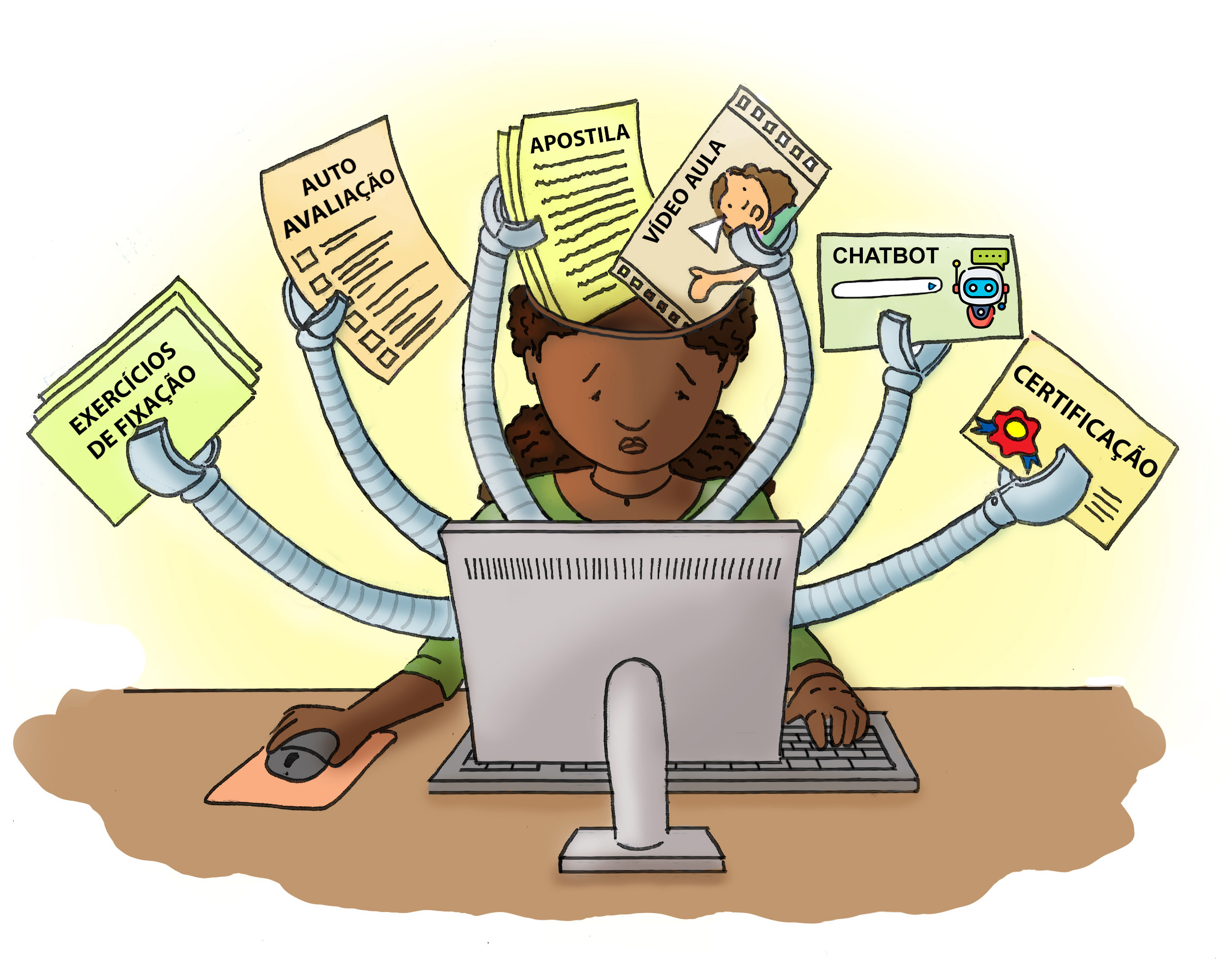 Com o crescimento da modalidade a distância, tornou-se necessário desenvolver estratégias para manter estudantes engajadas/os, mesmo na ausência de acompanhamento direto por parte de professoras/es e colegas. Nesse contexto, a gamificação emergiu como um recurso central para a automação do ensino. Pressupõe-se que a incorporação de dinâmicas, linguagens e estéticas dos jogos, como sistemas de pontuação, rankings, níveis e medalhas, possa aumentar a motivação e o envolvimento das/os estudantes no processo de aprendizagem (Oliveira et al., 2021). Essas técnicas rapidamente se disseminaram nos sistemas computacionais voltados à educação, chegando às plataformas de ensino-aprendizagem. Algumas instituições chegam a promover seus cursos enaltecendo o uso de um “AVA gamificado, sem tutor e autoinstrucional”, vangloriando-se da consolidação de um modelo de ensino alinhado ao cibertecnicismo.